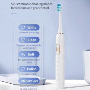 This USB electric toothbrush is a modern oral care solution designed to make daily dental hygiene simple, effective, and comfortable. Powered with sonic technology that produces high-frequency vibrations, it delivers deep cleaning action that helps remove plaque and surface stains more efficiently than manual brushing, contributing to a brighter and healthier smile. The medium-bristle design gently but thoroughly cleans teeth and gums, helping reduce buildup of food particles, tartar and discoloration for improved oral freshness. Featuring USB rechargeable convenience, this toothbrush lets you power up easily at home, in the office or while traveling without the need for bulky chargers. Its smart brushing modes and built-in timer encourage dentist-recommended brushing habits to ensure complete coverage of all areas of your mouth, while the ergonomic handle and waterproof construction make it comfortable and safe to use every day. Whether you want to enhance your daily routine or support more confident oral care with advanced cleaning performance, this electric toothbrush combines performance and convenience to help you maintain fresher, cleaner teeth and healthier gums.